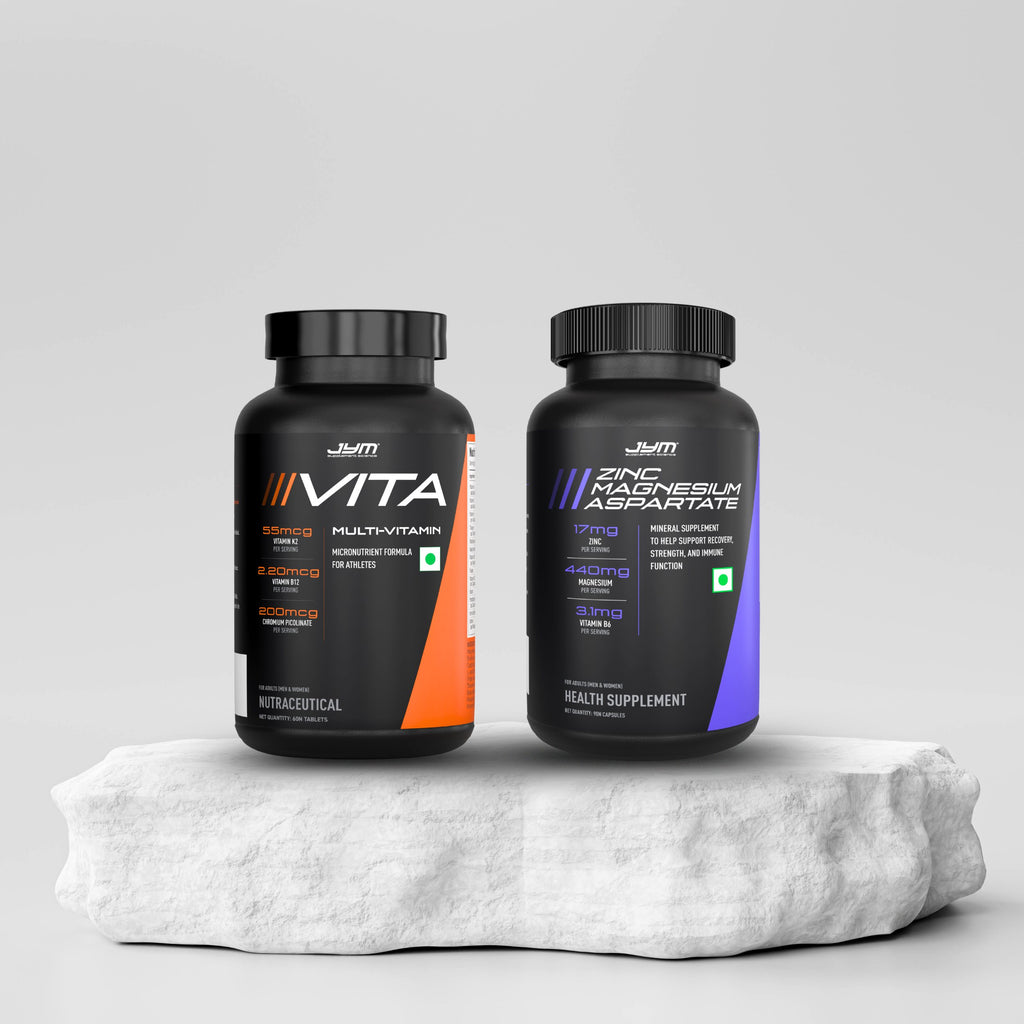 JYM Vita Multivitamin (60 Tablets) with JYM ZMA Zinc & Magnesium Aspartate (90 Capsules)